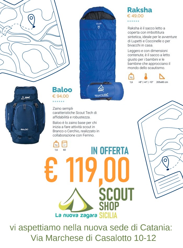 lo zaino capiente e tecnico pensato per cacce e voli di Lupetti e Coccinelle e per tutti i giovani che vogliono vivere in autonomia il campeggio e la vita all’aria aperta
